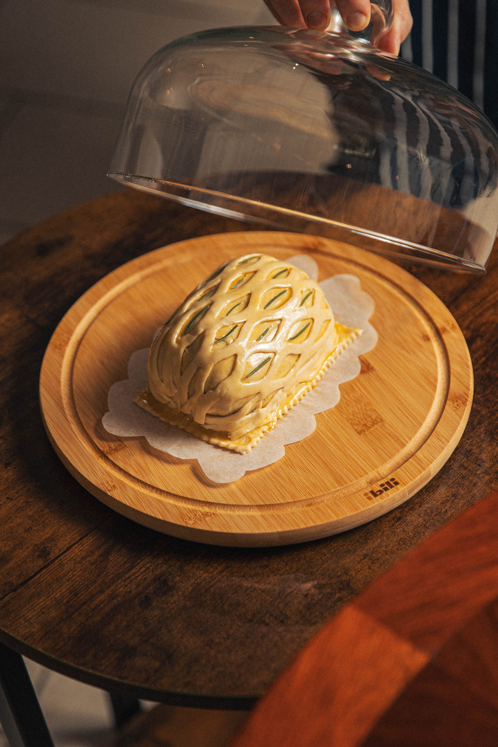 Nous vous proposons d’emporter nos pâté-croûte, pithiviers, bœuf Wellington saumon Koulibiak ou encore des pâtes fraîches et nos cookies.