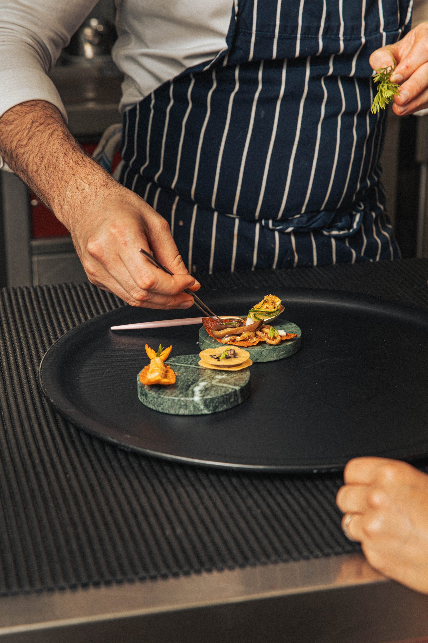 En 2019, il y avait un mas provençal, deux passionnés, de l’expérience, du savoir-faire, une vision commune, de l’énergie et un maître-mot : simplicité. Six ans plus tard une nouvelle rencontre marque un tournant pour bec, Erik Marchesan rejoint l’équipe et succède à Edouard à la tête de la cuisine.
